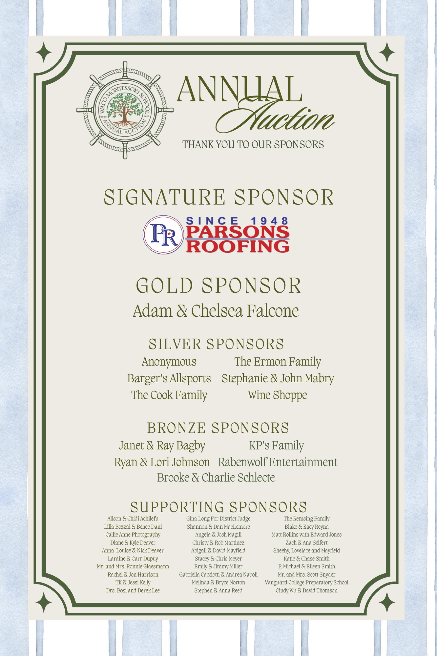 Sponsorship of the Waco Montessori School Annual Auction supports our school community to continue to educate the whole child.